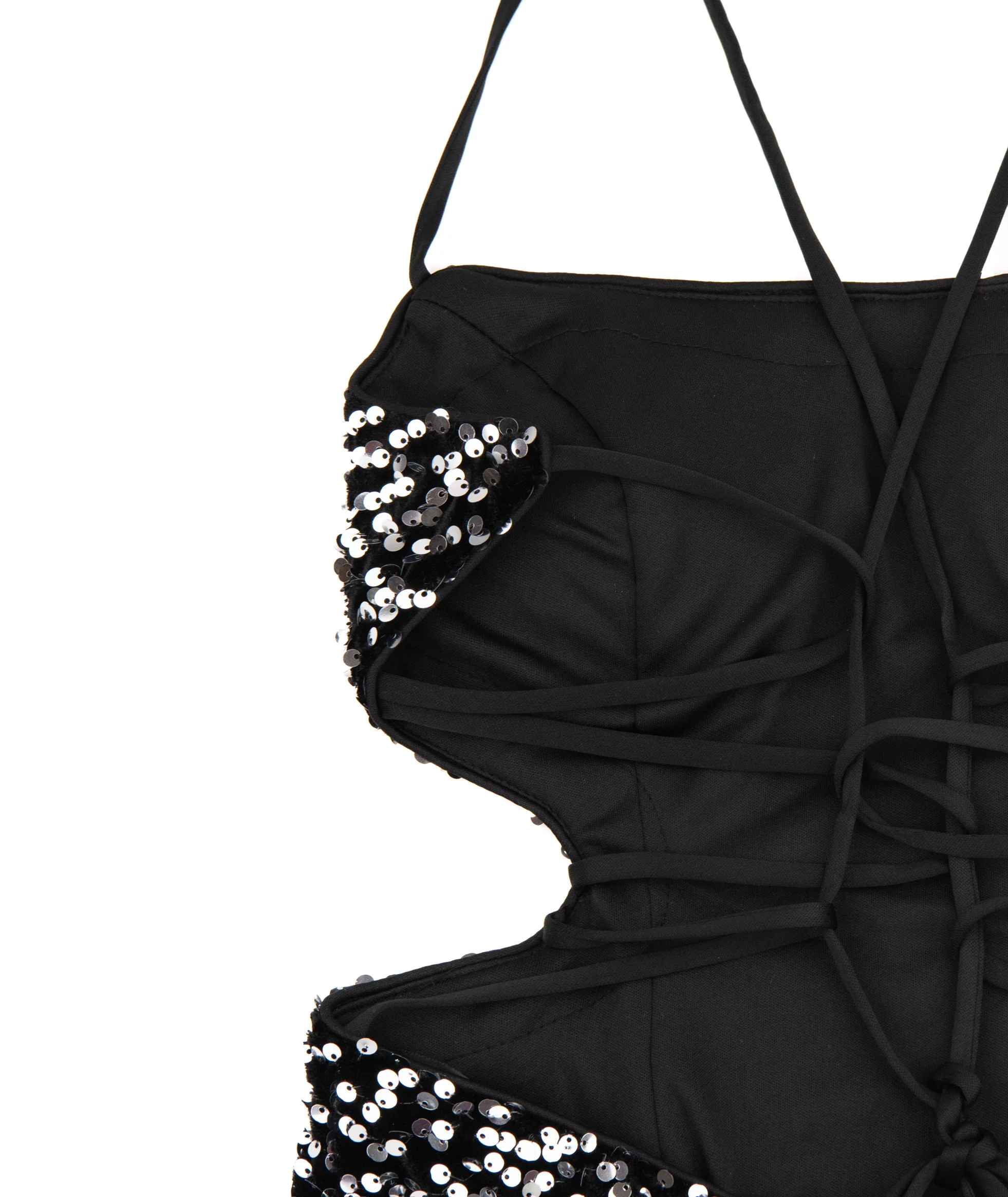 Get ready to shine in this Alyce Jocelyn dress! Featuring a soft sequin fabric and striking lace-up detailing, this gorgeous dress will make you the center of attention for any special occasion. Be the life of the party and show off your flashy fun style!