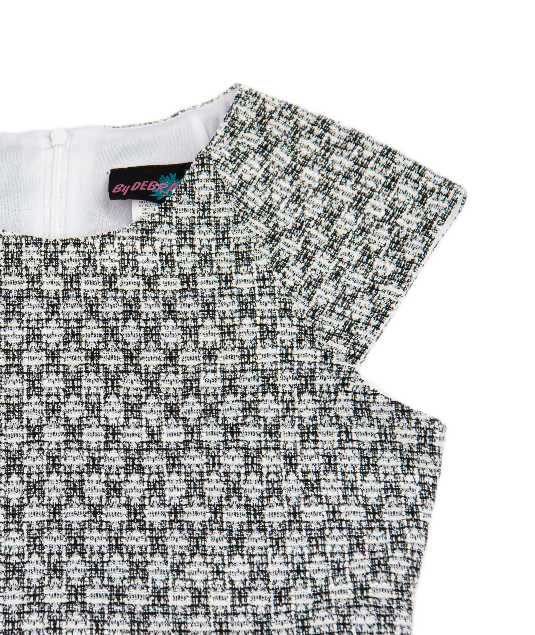 Be the talk of the town in this By Debra Girls Black/White Boucle Cap Sleeve Box Pleat Dress! This dress features a timeless design that is effortlessly chic. Perfect for the fashion-forward girl who loves to make a statement.