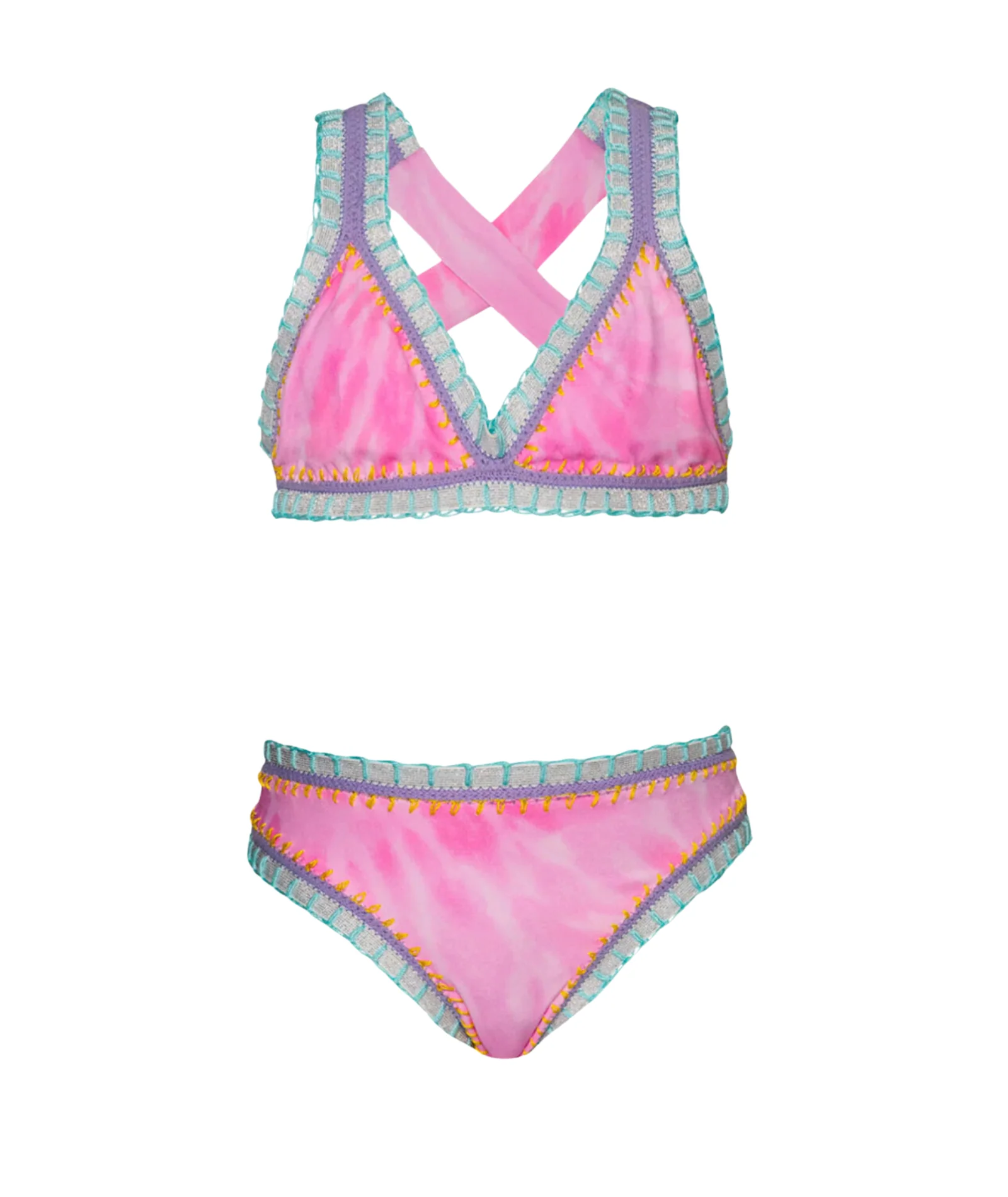 PQ Girls Rainbow Embroidered Bikini Cross Strap